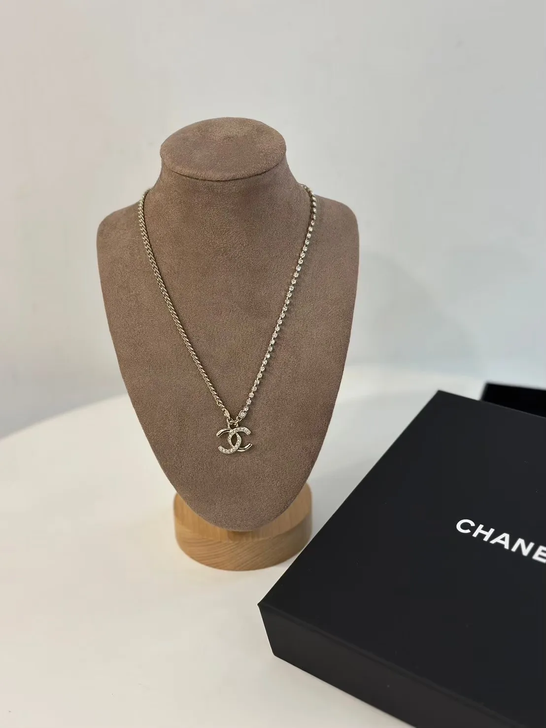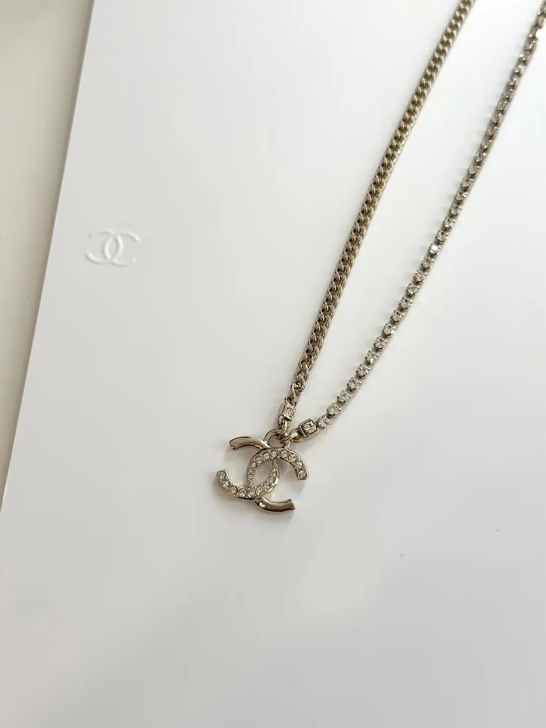 Chanel 24P半鑽項鍊淡金色